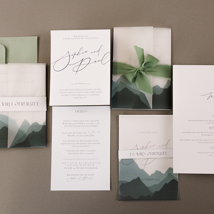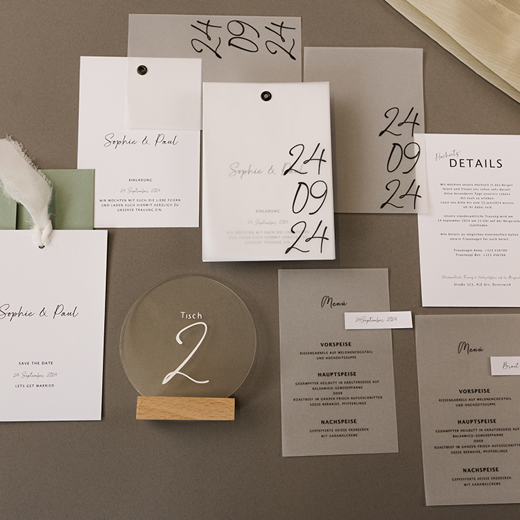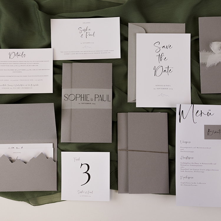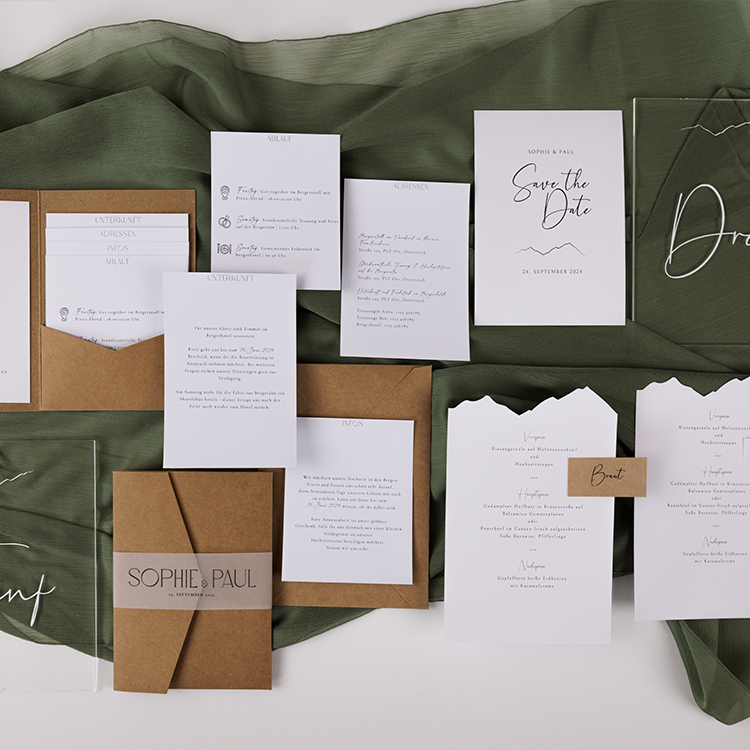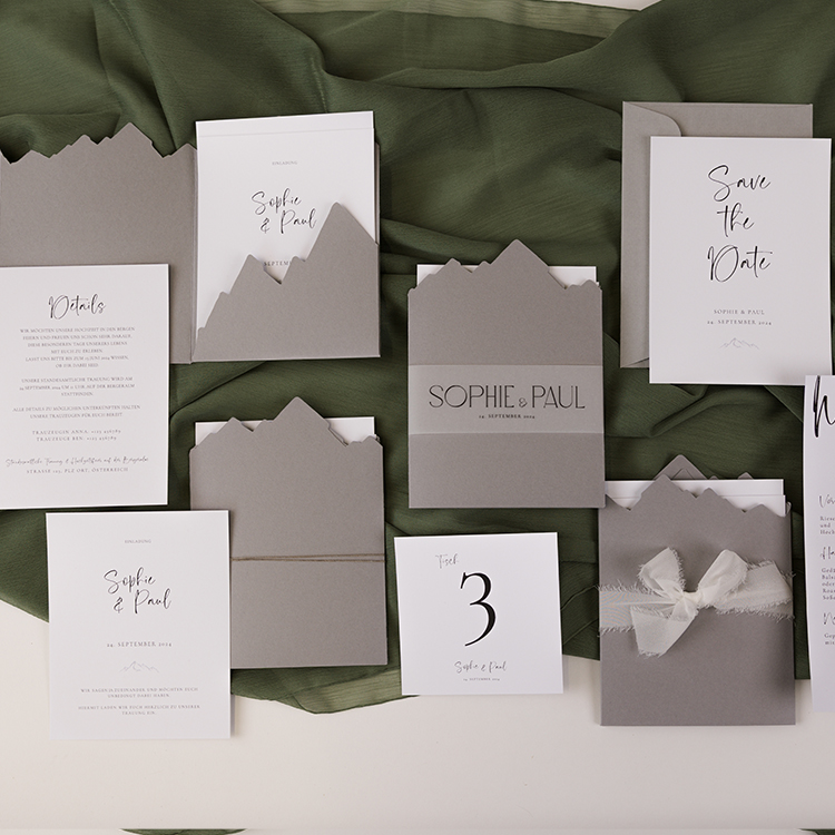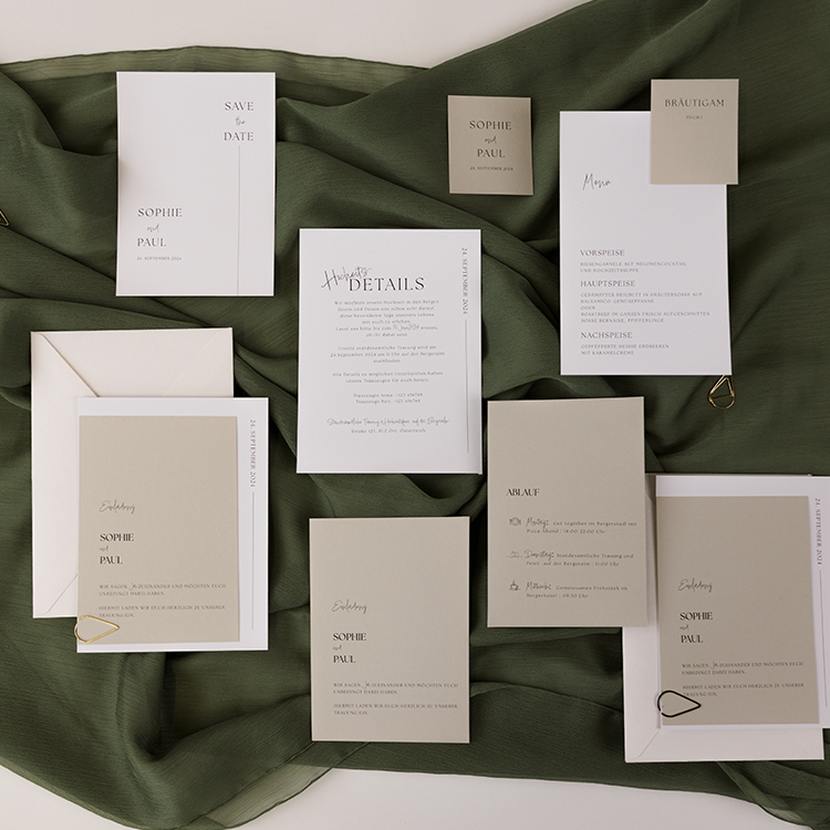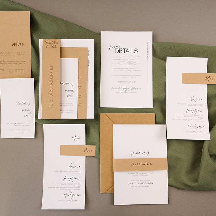 Für all die großen und besonderen Momente — und so viele mehr — haben wir die passende Papeterie für euch. Mit Designs, die eure Geschichte erzählen, und Details, die eure Liebe widerspiegeln.