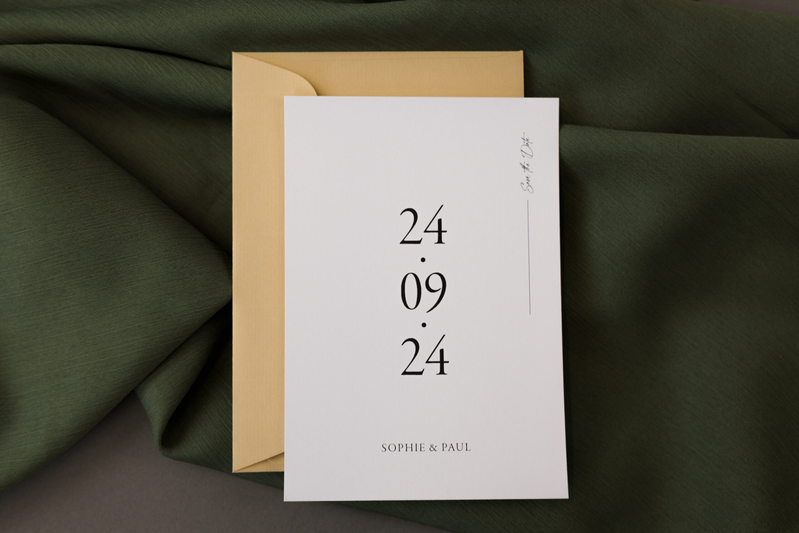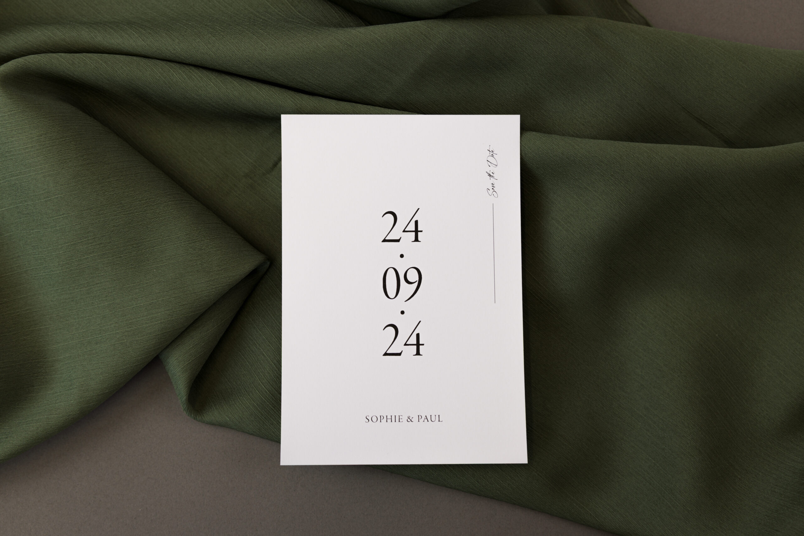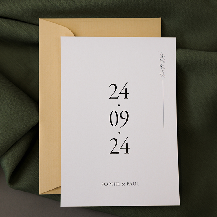 Dann haben wir hier als Ergänzung zur Hochzeitseinladung auch die passende save the date Karte.